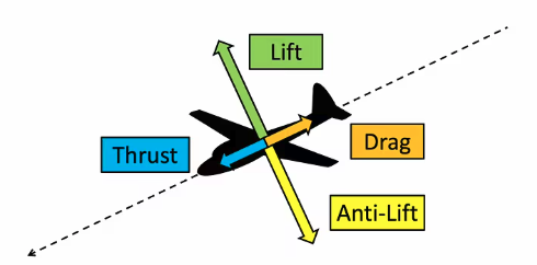 - Produced by engines (in powered flight) or by converting potential energy into forward motion (in gliders)